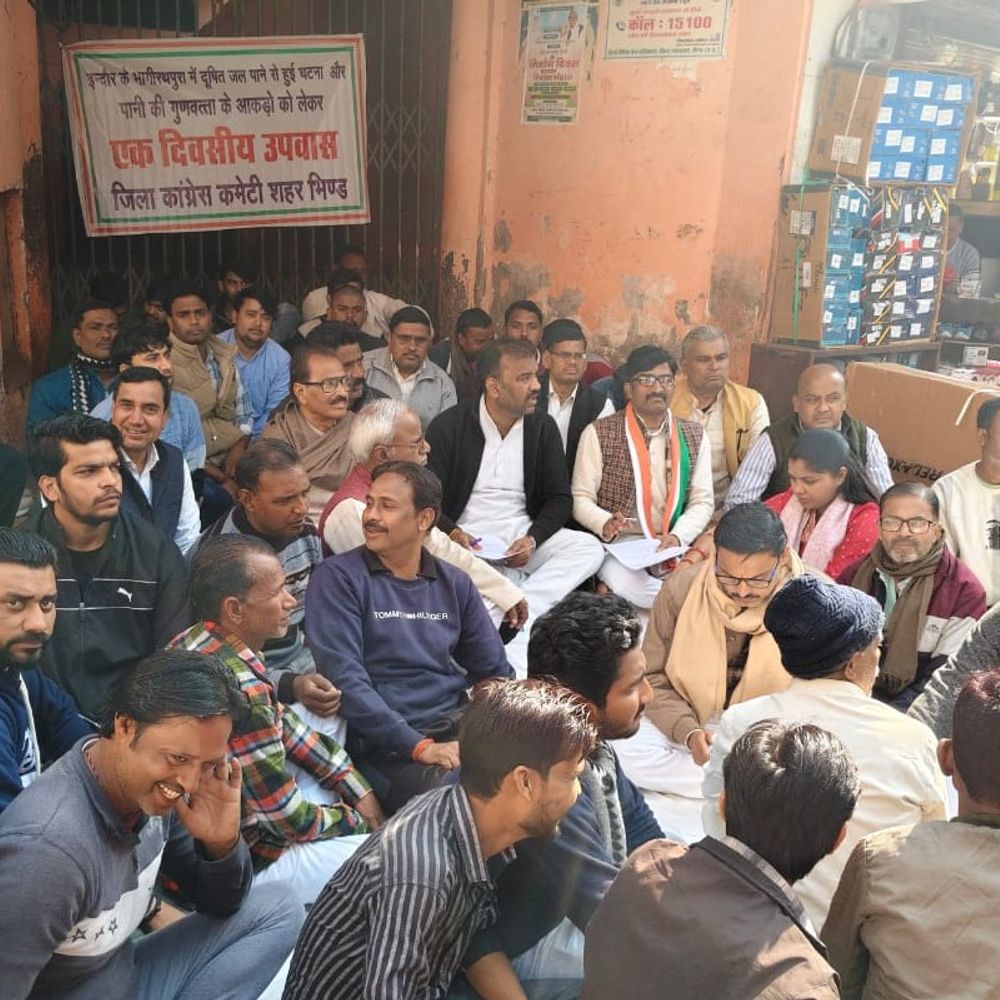 भिंड शहर में पेयजल की गंभीर समस्या और दूषित पानी से संभावित खतरे को लेकर जिला कांग्रेस कमेटी शहर ने एक दिवसीय उपवास रखकर विरोध दर्ज कराया। गोल मार्केट स्थित राष्ट्रपिता महात्मा गांधी की प्रतिमा के पास आयोजित धरना-उपवास में कांग्रेस नेताओं ने इंदौर के भागीरथपुरा में दूषित पानी से हुई मौतों का उदाहरण देते हुए भिंड में भी ऐसी घटना की आशंका जताई। कार्यक्रम के बाद जिला कलेक्टर के नाम ज्ञापन तहसीलदार को सौंपकर तत्काल कार्रवाई की मांग की गई। जिला कांग्रेस कमेटी शहर के अध्यक्ष धर्मेंद्र सिंह भदोरिया पिंकी के नेतृत्व में आयोजित इस उपवास कार्यक्रम में बड़ी संख्या में कांग्रेस कार्यकर्ता शामिल हुए। धरना स्थल पर नेताओं ने नगर पालिका की कार्यप्रणाली पर सवाल उठाते हुए कहा कि शहर के कई वार्डों में पेयजल पाइपलाइन गंदे नालों और सीवर लाइनों के बीच से गुजर रही हैं। कई स्थानों पर नाली और सीवर का पानी पीने के पानी में मिल रहा है, जो आमजन के स्वास्थ्य के लिए गंभीर खतरा बन चुका है। प्रेस को जानकारी देते हुए संतोष त्रिपाठी ने बताया कि इंदौर के भागीरथपुरा क्षेत्र में दूषित पानी पीने से 24 लोगों की मौत हो चुकी है, जबकि 400 से अधिक लोग बीमार हैं और लगभग 3000 लोग प्रभावित बताए जा रहे हैं। कांग्रेस नेताओं ने चेतावनी दी कि यदि समय रहते भिंड में भी पेयजल व्यवस्था दुरुस्त नहीं की गई तो यहां भी इंदौर जैसी त्रासदी घट सकती है। कांग्रेस ने ज्ञापन के माध्यम से मांग की कि नगर पालिका को निर्देशित कर शहर की सभी पेयजल पाइपलाइनों का समुचित मेंटेनेंस कराया जाए और जहां नालों व सीवर के पास से लाइनें गुजर रही हैं, वहां तत्काल सुधार कार्य किया जाए। नेताओं ने यह भी कहा कि यदि भविष्य में दूषित पानी से कोई जनहानि होती है तो इसके लिए जिला प्रशासन के साथ-साथ नगर पालिका प्रशासन भी जिम्मेदार होगा। इसके अलावा कांग्रेस ने भिंड शहर में टाटा कंपनी द्वारा डाली गई नई पानी की पाइपलाइन को तुरंत चालू कराने की मांग की, ताकि आम नागरिकों को शुद्ध पेयजल मिल सके। उपवास कार्यक्रम में पूर्व विधायक सोपत सिंह जाटव, डॉ. राधेश्याम शर्मा सहित बड़ी संख्या में कांग्रेसजन उपस्थित रहे