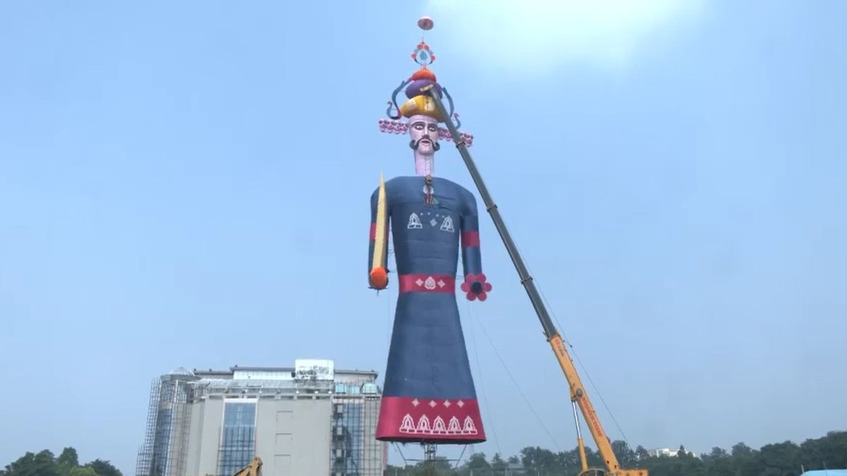 हरियाणा में देश का सबसे ऊंचा माना जाने वाला रावण का पुतला इस बार 180 फीट की लंबाई के साथ तैयार किया गया. इस पर 50 लाख रुपये का खर्च आया है. 5 हजार इको फ्रेंडली पटाखों से लैस है. इसे कल मुख्यमंत्री नायब सिंह सैनी रिमोट कंट्रोल से दहन करेंगे. रावण के साथ-साथ मेघनाद और कुंभकरण के पुतले सौ फीट ऊंचे हैं, जो 2000 पटाखों से लैस हैं.